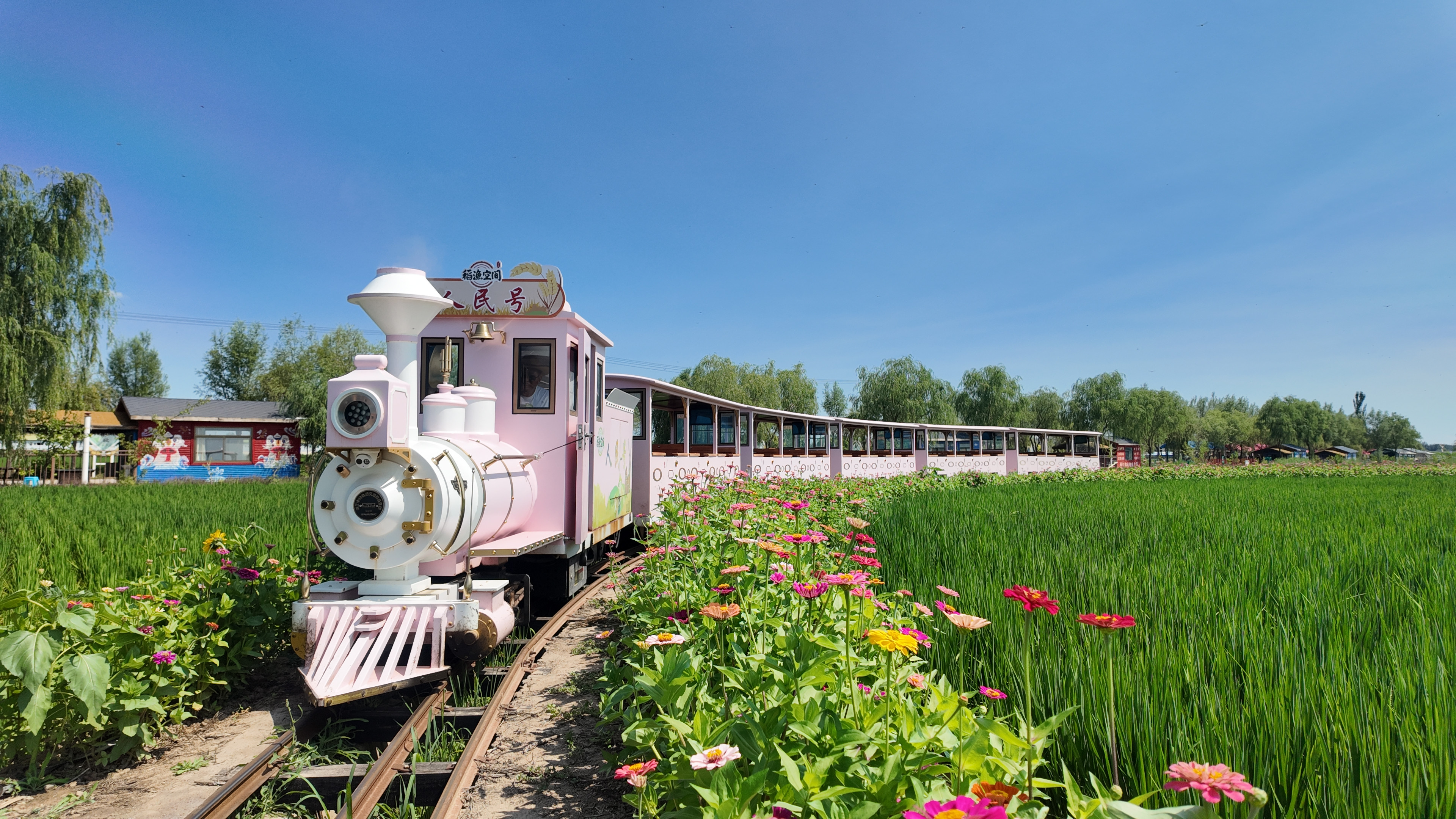 行驶在稻渔空间乡村生态观光园中的小火车。(受访者供图)