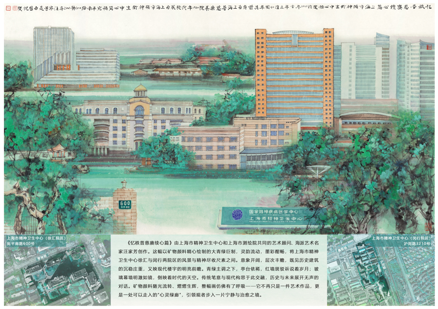 值得一提的是,地图封面与背面的画作与题词来自国家一级美术师、画家汪家芳为上海市精神卫生中心建院90周年捐赠的画作,优美的画笔为这份地图注入了视觉的温暖与人文的关怀。
